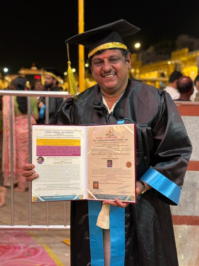 ಪ್ರಚಾರಕರ್ಥ ಸುಧೀಂದ್ರ ವೆಂಕಟೇಶ್ಗೆ ಅಮೇರಿಕಾ ವಿಶ್ವವಿದ್ಯಾಲಯದಿಂದ ಗೌರವ ಡಾಕ್ಟರೇಟ್